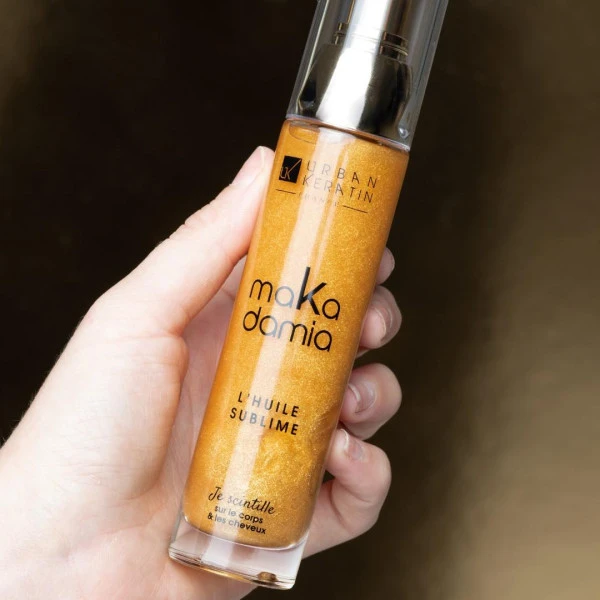 Huile solaire pailletée Makadamia, par Urban Keratin.