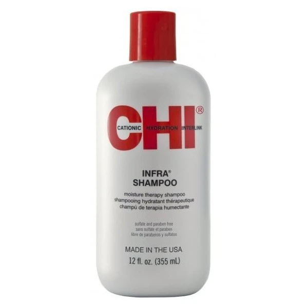 Application : Sur cheveux mouillés, appliquez le shampooing Infra CHI sur l’ensemble des cheveux. Émulsionnez et massez le cuir chevelu et les longueurs. Rincez à l’eau tiède. Répétez l’opération si nécessaire.